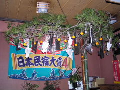 | 猿ケ京温泉キャラクター | 正月 松飾 | どんど焼 | 1/15 繭玉飾り | |